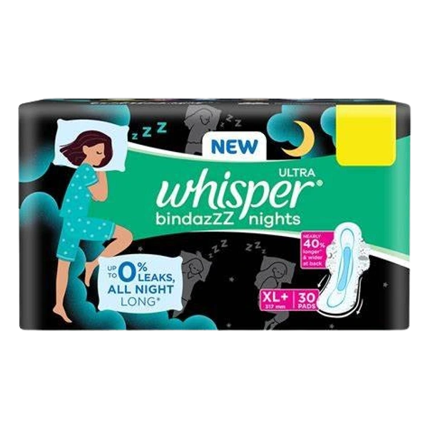 Whisper Bindazzz Nights Sanitary Napkin with Wings (XL+ ) 30 pads